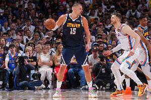 体育资讯5月14日讯 NBA天王山大战,掘金上半场以56-54领先雷霆。