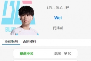 体育资讯5月14日讯 在近期的LPL登峰组比赛上,BLG在遭遇连败之后果断选择更换打野,而Wei没有比赛的日子中开始疯狂排位,目前韩服已经打上韩服第十。