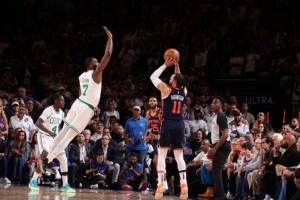 东部半决赛的第4场,尼克斯再次后来居上121-113战胜凯尔特人,取得大比分3-1的领先。布伦森39分5篮板12助攻,唐斯23分11篮板,阿努诺比20分3篮板2助攻,布里奇斯23分7篮板3助攻4抢断。在对手内线迷失更加依赖外线投射的情况下,尼克斯在下半场开始上强度,不断用身体和换位投射冲击对手,最终第三节打出37-23分的高潮,一举逆转比分。全场尼克斯也确实是表现更为出色的球队,篮球板43-31、助攻25-15均大幅领先。本系列赛,尼克斯已经在凯尔特人主场拿到过2场胜利,如能再次胜利而归,球队将挺进东部决赛。
