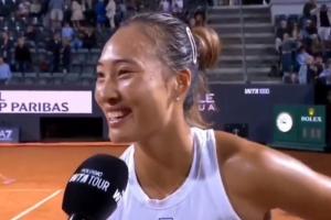 郑钦文:“很显然这是一场令人惊喜的比赛,我第三次在罗马进入八强,不知道为什么我就是在意大利打得特别好,感谢球迷们现场为我加油,感谢我的团队,因为这是我第一次在红土1000赛打进半决赛,这是一次非常棒的经历。”