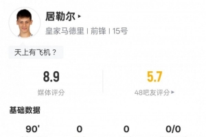 体育资讯5月15日讯 西甲第36轮,皇马2-1战胜马洛卡。居勒尔首发出战,2次过人成功,送出5次关键传球,传球成功率92.3%,评分8.9。