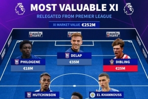 德转列英超降级三队最贵阵: