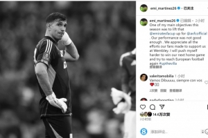 维拉门将马丁内斯赛后在社交媒体上写道:“本赛季我的主要目标之一就是为维拉赢得足总杯,但我们的表现不够好。非常感谢球迷在温布利球场对我们的支持。我会更加努力,争取赢得下一场主场比赛,努力再次跻身欧冠赛场。”