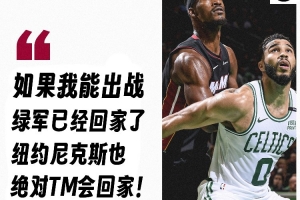 值得一提的是,去年巴特勒在热火时因伤缺席了对凯尔特人的首轮比赛,热火1-4不敌对手出局。在一则视频中巴特勒喊话绿军和尼克斯:“如果我能出战,波士顿现在已经回家了,(东决)纽约也绝对TM会回家。”