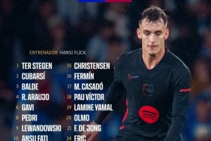 体育资讯5月15日讯 北京时间5月16日3点30,西甲第36轮,巴萨客战西班牙人,巴萨公布本场比赛名单,费兰因阑尾炎手术缺席,球队取胜即可夺得本赛季西甲冠军。
