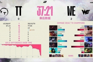 体育资讯5月15日讯 LPL第二赛段组内赛,WE以2-0横扫TT;
