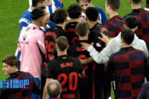 完场哨响时刻,巴萨球员准备庆祝,但西班牙人球员与巴萨球员爆发了冲突,看起来他们并不希望巴萨在自己的主场庆祝!之后,场内还打开了洒水系统。