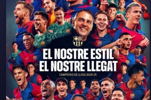 球队前锋莱万也在个人社媒转发了巴萨官方庆祝夺冠的海报,他在本赛季西甲32场25球可谓球队夺冠最大功臣之一。