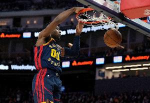 体育资讯5月16日讯 勇士今天举行了赛季结束新闻发布会,库明加出席并接受了媒体的采访。小吧整理了他的部分言论。