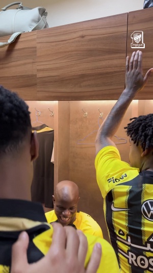 曾效力英超切尔西的坎特正在联合踢球,他在更衣室害羞地坐着没参与庆祝。但随后被曾经效力利物浦的法比尼奥和一众队友拽起来,一起庆祝。