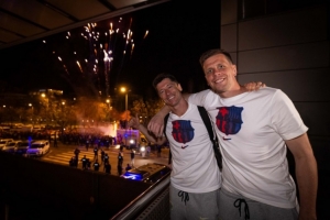 赛后,巴萨官方社媒晒出莱万与什琴斯尼“勾肩搭背”的照片,祝贺两位波兰老将:💙❤️🤝🇵🇱