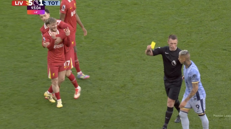 英超第34轮,利物浦主场5-1大胜热刺。比赛第93分钟,远藤航对理查利森犯规,主裁响哨,路过的埃利奥特踩球拨球想穿裆理查利森,这一动作惹怒了理查利森,他抓住埃利奥特,埃利奥特也上手推了一把还击,随后两人继续争吵,埃利奥特向理查利森比了一个“30”的手势,主裁赶来各打五十大板。