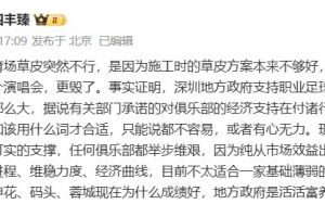 “深圳体育场草皮突然不行,是因为施工时的草皮方案本来不够好,然后现在还强行加塞一个演唱会,更毁了。事实证明,深圳地方政府支持职业足球的力度可能没有想象中那么大,据说有关部门承诺的对俱乐部的经济支持在付诸行动时也面临困难。不知该用什么词才合适,只能说都不容易,或者有心无力。