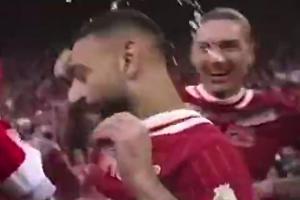 在一段流传出的视频中可以看到,努涅斯无视萨拉赫的劝阻,朝他的头上泼洒香槟,周围所有人均是一笑置之。利物浦当地媒体称,努涅斯在夺冠庆典中手持的是一款0酒精香槟饮料。由于队内萨拉赫和科纳特均是穆斯林,利物浦俱乐部在事前早有准备,就像在五年前上一次英超夺冠时一样。