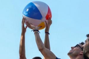 体育资讯05月17日讯 巴萨拿下国内三冠王,俱乐部举行夺冠游行。在游行中,巴士上出现了沙滩球。