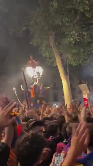 巴萨球迷们在庆祝球队夺冠时,高喊梅西的名字。