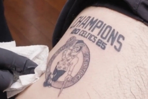 值得一提的是,季后赛开打前,曾有凯尔特人球迷在自己大腿上纹了“2025年凯尔特人总冠军”纹身。