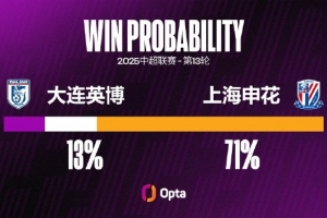上海申花本赛季在进攻三区有47次获得球权,只有成都蓉城更多(51);大连英博本赛季在进攻三区只有24次获得球权,是所有球队中第二少的(长春亚泰,23)。
