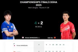 体育资讯05月17日讯 世乒赛男单1/64决赛,世界排名第37位的中国选手薛飞,对阵世界排名第29位的日本选手篠塚大登,最终薛飞在先下两局的情况下遭逆转,2-4不敌对手止步首轮。