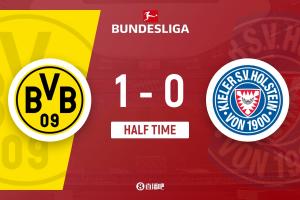 半场战罢,多特暂1-0荷尔斯泰因基尔。