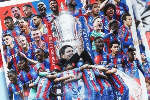 体育资讯5月18日讯 足总杯决赛,水晶宫1-0曼城,捧起冠军奖杯。