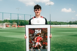体育资讯5月18日讯 弗雷德里克森成为青训学院第254位在曼联一线队出场的球员,他获赠纪念相框。