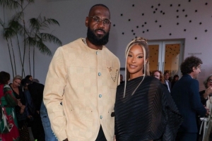 勒布朗与萨瓦娜-詹姆斯出席了在洛杉矶举行的第20届哈默博物馆年度晚会。