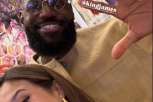 合照中,詹姆斯戴着墨镜比划手势。