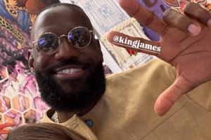 詹姆斯夫妇今日出席了在洛杉矶举行的第20届哈默博物馆年度慈善晚会,詹姆斯的妻子萨瓦娜担任晚会联合主席之一。