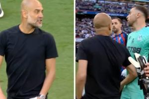 最终,水晶宫替补门将特纳将瓜迪奥拉拉开,离开前瓜迪奥拉对亨德森摇手指表示不满,亨德森则笑着举起双手比出“10”的手势。