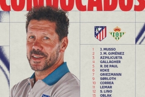 前锋:7-格列兹曼、9-索尔洛特、10-科雷亚、17-里克尔梅、19-阿尔瓦雷斯、22-朱利亚诺-西蒙尼