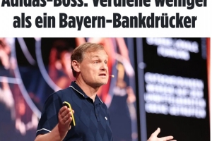 体育资讯5月18日讯 阿迪达斯周四在菲尔特召开股东大会,CEO比约恩-古尔登表示自己的薪水比拜仁替补球员都少很多。