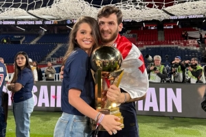 克瓦拉茨赫利亚更新社交媒体晒照并写道:冠军🏆❤️💙这里是巴黎!