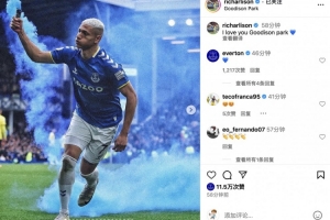 埃弗顿官方社媒回复理查利森:💙