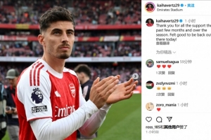 体育资讯5月19日讯 哈弗茨在阿森纳1-0纽卡的英超联赛中时隔92天回归赛场,他在赛后更新了社交媒体。
