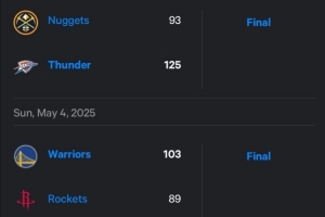 体育资讯5月19日讯 次轮抢七,雷霆主场125-93大胜掘金,大比分4-3晋级西决!