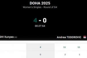 石洵瑶下一轮将对阵朴佳贤和巴特拉的胜者。