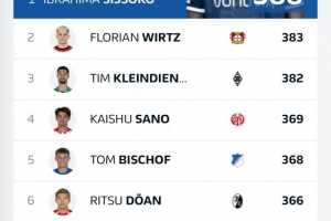 据日本博主“Japan Soccer Fan”援引德甲官方数据统计,在德甲联赛官方公布的对抗成功数统计中,佐野海舟和堂安律也都在榜,其中佐野海舟以369次成功对抗排在联赛第4位,堂安律也是以366次位列第6位。
