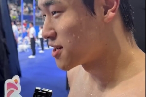 赛后,潘展乐接受了记者采访。潘展乐表示:“汪大哥、孙大哥永远是自己的偶像,也是我成长路上的引路人。”