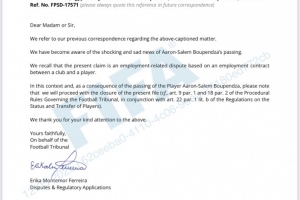 该记者在社媒晒出了FIFA的确认信函,由于布彭扎的去世,因此FIFA也将关闭此前扎马雷克体育与他的纠纷案。