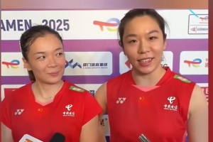 在赛后的采访环节,中国队队长贾一凡谈到了本届苏迪曼杯中国队的加油口号“羽啸鼓浪巅,中国剑指天”。