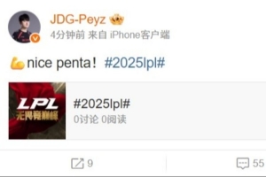 体育资讯5月19日讯 2025LPL第二赛段,JDG2-0战胜NIP,赛后JDG全员登录微博发文“继续加油”,在比赛中拿到了五杀的Peyz发文“nice penta”!