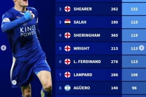 瓦尔迪生涯英超首秀已经27岁8个月,此后他打进145粒英超进球,德转盘点了英超历史球员年龄在27岁8个月之后进球榜,瓦尔迪居首,具体如下: