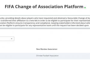 体育资讯05月20日讯 国际足联协会变更平台官网显示,成都蓉城中场杨明洋的会籍由瑞士足协变更成中国足协。