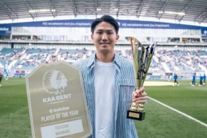 根特俱乐部官方社媒晒出了渡边刚领取最佳球员奖杯的照片并向他送上了祝贺。