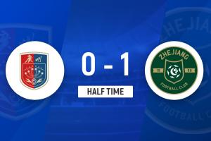 第22分钟,浙江队右路进攻,孙国文回做姚均晟,后者送出传中到禁区,中路陶强龙凌空抢点,门将下地扑出但脱手,门前王钰栋轻松补射空门入网,浙江1-0领先↓