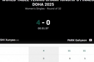 四局比分分别为:11-8,11-5,11-5,11-7。本场比赛石洵瑶仅用时32分钟,就轻松取胜。
