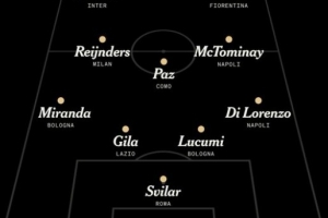 后卫:米兰达(博洛尼亚)、吉拉(拉齐奥)、卢库米(博洛尼亚)、迪洛伦佐(那不勒斯)