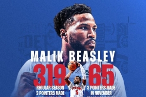 体育资讯5月21日讯 活塞官推今日晒图,发布了球队射手比斯利的几项数据海报。