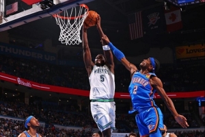 体育资讯5月21日讯 NBA季后赛西部决赛G1,森林狼半场48-44领先雷霆。